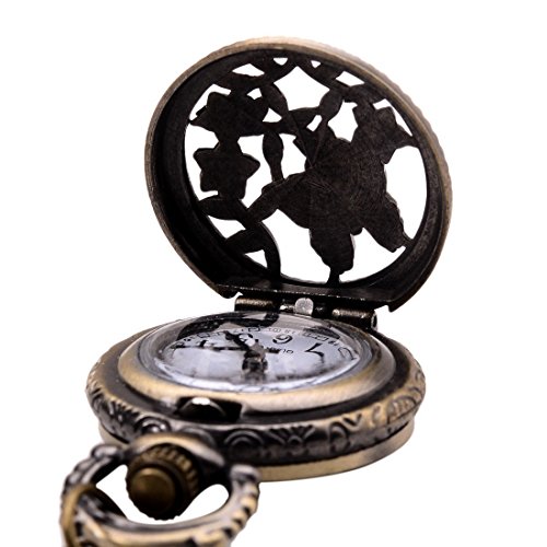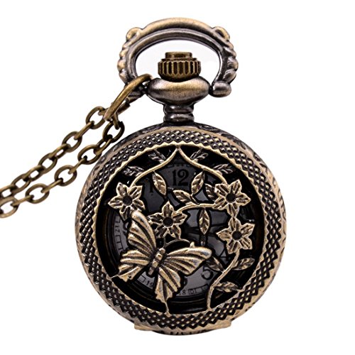 -. Title : SODIAL(R) Watches Vintage Bronze 31.5" Chain Antique Pocket Watch Fashion Gift-Butterflies&Flower
