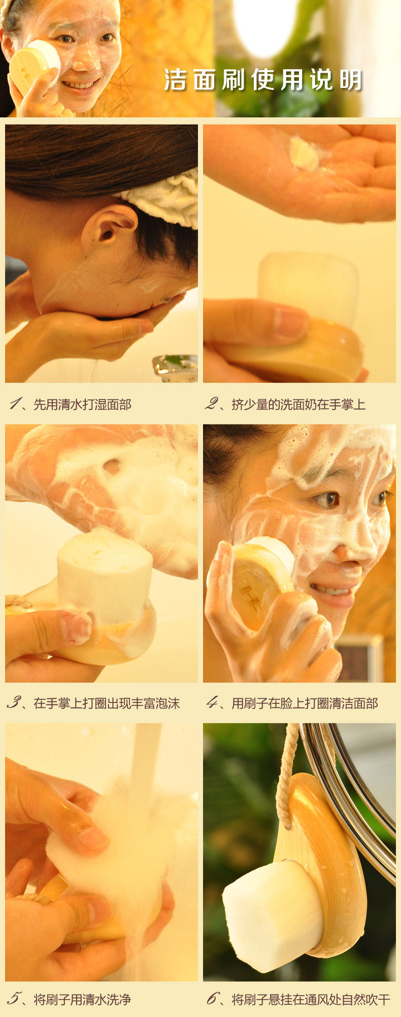 产品介绍 本品为素一素二美妆特别定制的高端洁面刷,楠竹羊毛款采用天然羊毛,相比一般的洗脸刷,更柔软、细腻,清洁力也更强,给您带来温润、舒适的全新洗颜体验。 刷柄为人体工学设计,助您小手拿捏更方便、更舒适。是近期众多美容达人的新宠!超细羊毛更可替代传统手洗方式,帮助有效清洁毛孔,让您瞬间清透、舒爽。 使用方法 卸除彩妆或者BB的时候,直接用洁面乳在脸上搓出泡沫后用刷子加以按摩。 打圈:挤出洁面乳,用起泡网柔搓至起泡,沾取泡沫用洁面刷在额头及两颊出从内向外打圈揉搓,柔软的刷毛能在清洁过程中轻柔按摩脸部,以起到清洁肌肤的效果。 纵推:在鼻梁鼻翼处将洁面刷斜向45度角纵向来回轻柔推拉肌肤,能将嵌在鼻翼隐秘处的深层污垢,如黑头、白头等彻底清洁干净。 环刷:将洁面刷从人中中央到下巴地步分别向外环绕轻刷,能清洁到肌肤的细微之处,最后以清水洗净即可。柔刷以轻柔力度为主,物理性的清洁不需要用很多力气,轻柔打圈就可以了。 建议仰脸使用,可让毛孔最大限度打开,洁面时泡沫也不会顺脸颊滴落。 特别注意 楠竹羊毛款由于采用天然羊毛,可能会有少许羊毛味道,属正常情况,如对羊毛味或羊毛敏感者,请慎买! |