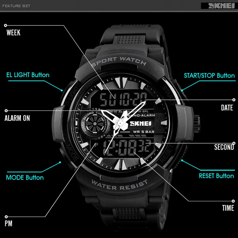 Feature:Water Resistant,LED display,Multiple Time Zone,Back Light,Shock Resistant,Chronograph,Auto Date,Week Display,Alarm