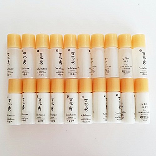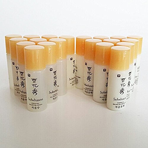 -. Binding : Misc. -. Brand : Sulwhasoo -. EAN : 8801051670950 -. Feature : water : Formulated with Korean medicinal herbs, this gel-textured water balances and delivers deep hydration. - Purslane effectively hydrates the skin and Matrimony Vine soothes and calms the skin while promoting deep hydration. - Spreading gently over the skin and penetrating deep into the skin this essential water saturates the skin with optimum hydration and nutrients. / lsion : Formulated with Korean Medicinal Herbs, this moisture-rich lsion promotes soft, smooth skin. - Mountain Peony softens skin texture and Yai Jiu Hua improves skin clarity by promoting skin's natural circulation. - Spreading easily over the skin and absorbing completely, this essential moisturizer leaves skin smooth and supple. / Water Samples 5ml x 10pcs (50ml) / lsion Samples 5ml x 10pcs (50ml) / super saver than normal size -. Label : Amore Pacific -. Manufacturer : Amore Pacific -. ProductGroup : Beauty -. ProductTypeName : BEAUTY -. Publisher : Amore Pacific -. Studio : Amore Pacific -. Title : Sulwhasoo Essential Balancing Water & lsion Sample Set (5ml X 20pcs)