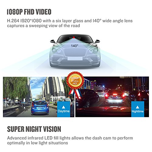 - UTRA HD QUALITY AND MORE: Recording full HD 1080P videos with starlight night vision, wide dynamic range (WDR) technology and automatic motion detection, this mini dash cam features an A+ grade 140° wide-angle lens and 5.0-megapixel photo camera.