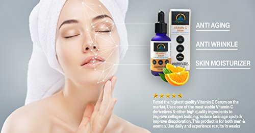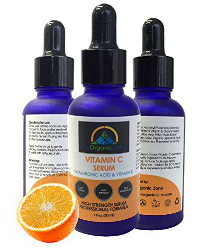 -. Feature : INGREDIENTS: Vitamin C (Sodium Ascorbyl Phosphate), Botanical Hyaluronic Acid, Natural Vitamin E, Organic Herbal Infusion, Organic Aloe Vera, Witch Hazel, Kosher Vegetable Glycerin, MSM, Organic Jojoba Oil, Ferulic Acid, L-Arginine, Carbomers, Phenoxyethanol, Ethyl Hexyl Glycerin / FEATURES of Vitamin C + Hyaluronic Acid + Vitamin E Serum: Uses one of the most stable Vitamin C derivatives & other high quality ingredients to improve collagen building, reduce fade age spots & improve discoloration. Product for both men & women. Use daily and experience results in weeks / SKIN MOISTURIZER, WHITENER: Vitamin C Serum acts as a perfect dry skin moisturizer, especially a face moisturizer with skin tightening capability / SKIN WHITENING SERUM: The Vitamin C Serum has skin bleaching and skin whitening effects and, with it's professional formula, offers solution for skin tightening and skin firming as well as smoothening small lines and face wrinkles / SAFE TO USE: Free of Parabens, GMOs, Phthalates, Mineral Oil, Petrolatum, Fragrances & Artificial Colors