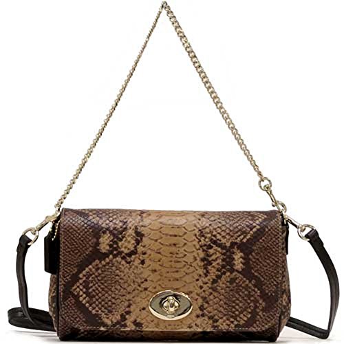 -. Brand : Coach -. Color : Natural -. Department : womens -. EAN : 0888067767414 -. Feature : Snake skin leather pattern with golden tone hardware / Flap top with turn-lock closure / Inside features 1 slip pocket / Chain strap can be used as small top handle or large wristlet; Removable shoulder or crossbody strap / Approx. 8" (L) x 5.5" (H) x 2" (W) -. Model : F35555 -. MPN : F35555 -. PartNumber : F35555 -. ProductGroup : Shoes -. ProductTypeName : HANDBAG -. Size : small -. Title : Coach Snake Mini Ruby Crossbody Shoulder Handbag 35555 -. UPC : 888067767414 Wrapped in snake skin leather pattern and golden tone hardware. This flap style cross-body bag and clutch is lined in sateen fabric and features an open slip pocket. It can be worn as a shoulder or cross-body bag, or simply unhook the strap from side and you can carry it as a clutch. It is extremely versatile! It measures approximately 8.5 inches (L) x 5 inches (H) x 2 inch (W).