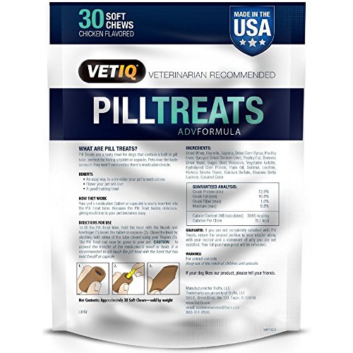 -. Publisher : VetIQ Pill Treats Soft Chews for Dogs, Chicken Flavored 30 ea (Pack of 3)