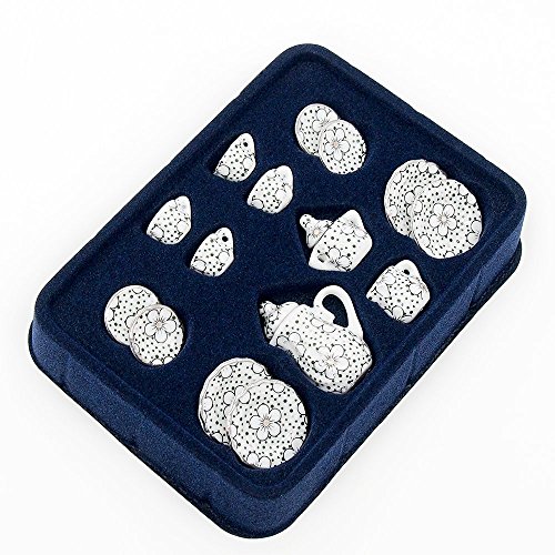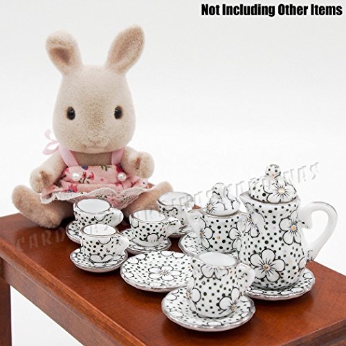 -. Title : Odoria 1:12 Miniature 15PCS Porcelain Tea Cup Set Plum Blossom Dollhouse Kitchen Accessories