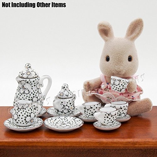 -. Feature : Scale: 1:12 Dollhouse Kitchen Miniature / Including: 1x Teapot, 1x Sugar Bowl, 1x Creamer, 4x Dishes, 4x Cups, 4x Saucers (Not Including Other Items) / Approx. Size (LxWxH): Teapot 2.6x2x3.4 cm - 1x0.8x1.3 inch / High Details and Workmanship: For Dollhouse Decor of Kitchen, Diningroom, Livingromm, Restaurant, Bar etc. / Teapot and sugar bowl both have a lid, and the lids are removable.