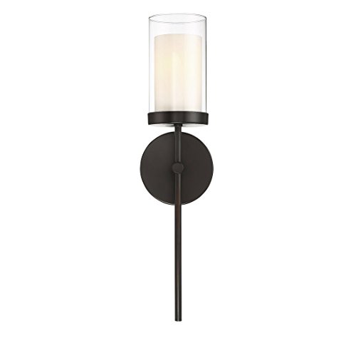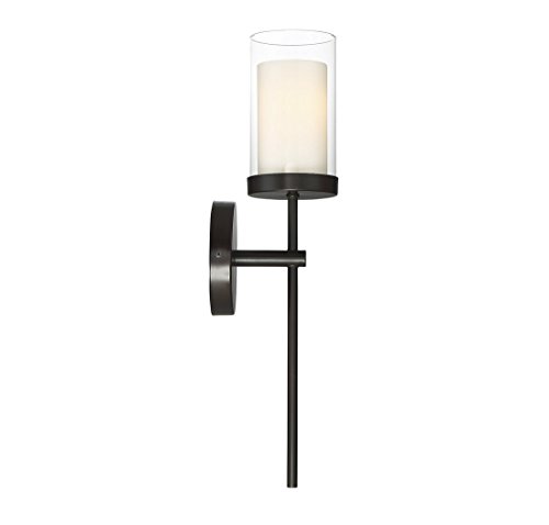 For lighting that is beautiful in its stark simplicity, look to this trade winds 1-light sconce. Its airy design showcases an arm topped with two layers of glass: an inner layer of white opal etched glass and an outer layer of clear glass. Finished in oil rubbed bronze.Feature