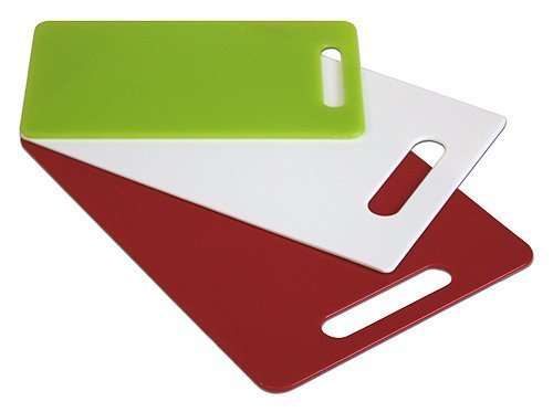 - Includes a red cutting board for meats, white for cooked foods, and green for vegetables or fruit