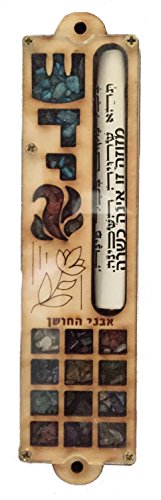 Judaica Jewish Mezuzah Wood Shin with Stones and Scroll By Matiel