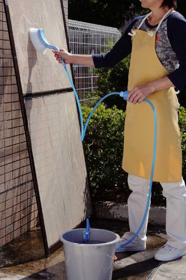水を入れたバケツがあるだけで洗浄できるブラシです。