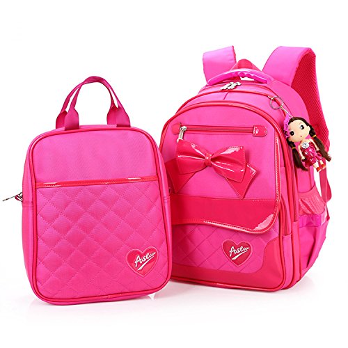 -. Feature : Grade nylon material, feels comfortable, waterproof dirt and good styling effect, bright surface / Dimension: 11.8"*5.5"*16.1" (Length*Thickness*Height), small: 11.0"*5.1"*13.9" (Length*Thickness*Height), purse dimension: 9.8"*4.3"*12.2" (Length*Thickness*Height) / Fashion cute bow design, loved by the girls, this bag is the first choice to send girls gifts. / Toys made of fabric bag cleaning convenience, with a cloth to gently wipe clean. / The back pack can hold book, textbook, iPad, binder, lunch box