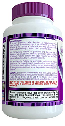 -. Feature : HIGHEST POTENCY PROBIOTICS SCIENTIFICALLY DEVELOPED SPECIFICALLY FOR WOMEN - Promotes digestive, urinary, & vaginal health in delayed-release capsules so higher levels of bacteria will reach the small and large intestines to colonize and improve gut health. / CRANBERRY EXTRACT, GOLDENROD, & BEARBERRY HERBAL BLEND OF - Fights bacteria & supports resistance of urinary tract infections UTI's. / DIGESTIVE ENZYMES ORGANIC BLEND - breaks down all layers of yeast cells to promote gut and vaginal health. All natural custom probiotics for women formula utilizes only natural ingredients, no cheap synthetic fillers. / 30 BILLION CFUs PER SERVING - High-dose probiotics have been shown to promote more gastrointestinal benefits than lower doses used by others. Higher colonization of beneficial gut flora increases health benefits. / MOST COMPLETE PROBIOTICS SUPPLEMENT WITH 18 STRAINS of (GOOD GUY) BACTERIA - Our probiotics contains 18 of the most beneficial strains for your gut, including special strains not found in most other inferior probiotic supplements.