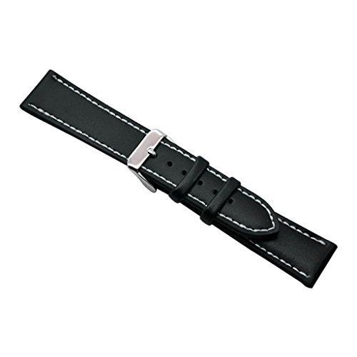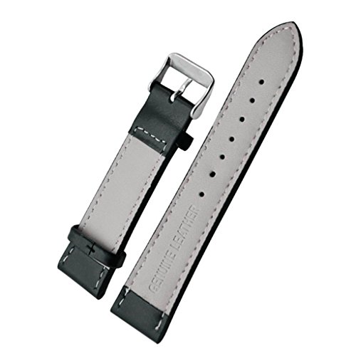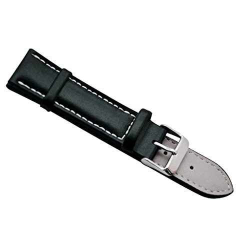 -. Title : Vintage Replacement 18mm Genuine Leather Silver Buckle White Stitch Watch Strap/Watch Band, Black
