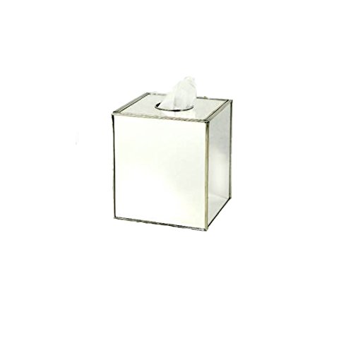 -. Feature : Mirrored tissue holder. / Matching wastebasket, vanity tray and hand towel holder also available. Dimensions are 5 inches x 5 inches x 5.5 inches. / Fits over standard boutique tissue boxes. / Mirrored bathroom sets add elegance and shine to bathroom decor.