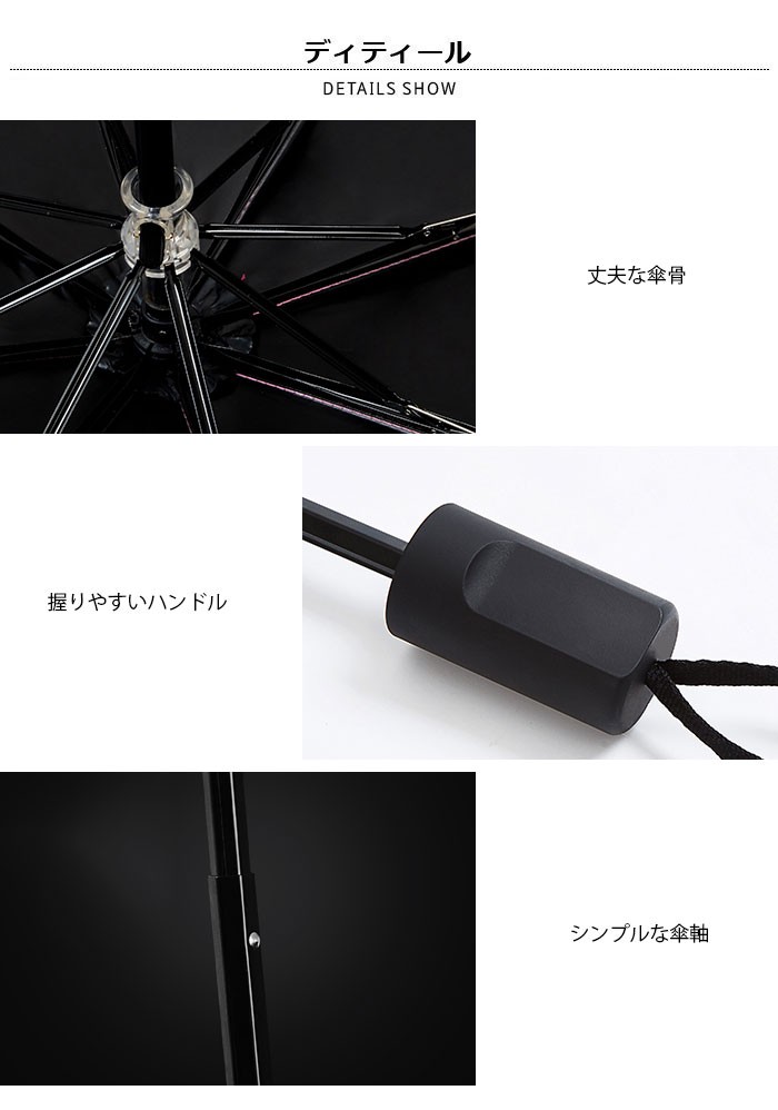| 素材 | :【天蓋材料】ポリエステル【傘軸材料】ステンレス鋼【傘骨材料】ステンレスとガラス繊維 |