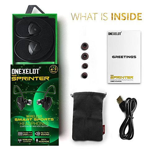-. Feature : ♫THE HIGHEST QUALITY♫ - Bluetooth 4.2 wireless headphones like the model "SP.R.INTER," are the best UNIQUE stereo Bluetooth earbuds on the market with advanced audio technology. The built-in high-quality sound chip provides you with the crystal clear high & low frequencies. Two interconnection pieces are creating great stereo and excellent bass surrounding sound. / ♫HD BLUETOOTH 4.2 TECHNOLOGY:SPECIFICALLY CREATED FOR ACTIVE SPORT AND TRAVEL♫ - After many years of research and development, we are finally created our best, reliable, and sporty premium Bluetooth headphones for active sport and travel! The latest Bluetooth wireless technology means incredibly fast pairing and transmission.Each earbud contains a premium high quality audio driver delivering powerful highs, crystal clear mids and deep lows with enhanced bass for a surround sound music experienc / ♫COMFORTABLE FOR EVERYTHING♫ - Model "SP.R.INTER" was made to stay in your ears at any vibrations and shakings. Your wireless headset will safely remain in place even if you're a professional gymnast, runner or even a basketball player. Reliability is guaranteed by a flexible short connecting cable. Incomparable sound quality, revolutionary design, perfect connectivity. "SP.R.INTER" doesn't just look futuristic - it's indeed not from our world. / ♫MULTIFUNCTIONAL AND ULTIMATE COMPATIBILITY♫ - Technology with voice notification of incoming calls. High dynamic range built-in microphone to make calls, with buttons on the earbuds allows you to Play/Pause, Increase/Decrease Vol., Previous/Next Soundtrack to your favorite music as well as Answer/Reject phone call without reaching your phone. Our headset is compatible with hundreds of different mobile phone brands. The first wireless earphones that satisfy all your needs. New Bluetooth 4.2 ensu / ♫ON THE GO♫ - When fully charged, "SP.R.INTER" will give you up to 4 -7 hours of playtime at a moderate sound level for each charge. With a generous battery life, "SP.R.INTER" users can stay on the move and enjoy music for much longer. ◈100% SATISFACTION GUARANTEE◈ - Do whatever you like with our "ONEXELOT" Bluetooth earphones, or we will refund your money! ✔LIFETIME WARRANTY ✔ makes this a zero-risk purchase.