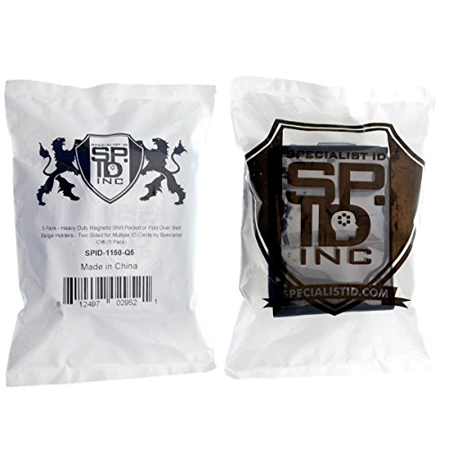5 Pack - Heavy Duty Magnetic Vertical Shirt Pocket or Fold Over Belt Badge Holders - Two Sided for Multiple ID Cards by Specialist ID
