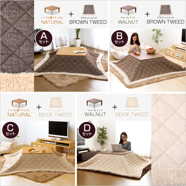 ●70cm幅・正方形のこたつテーブルとこたつ掛布団が付いた2点セット!