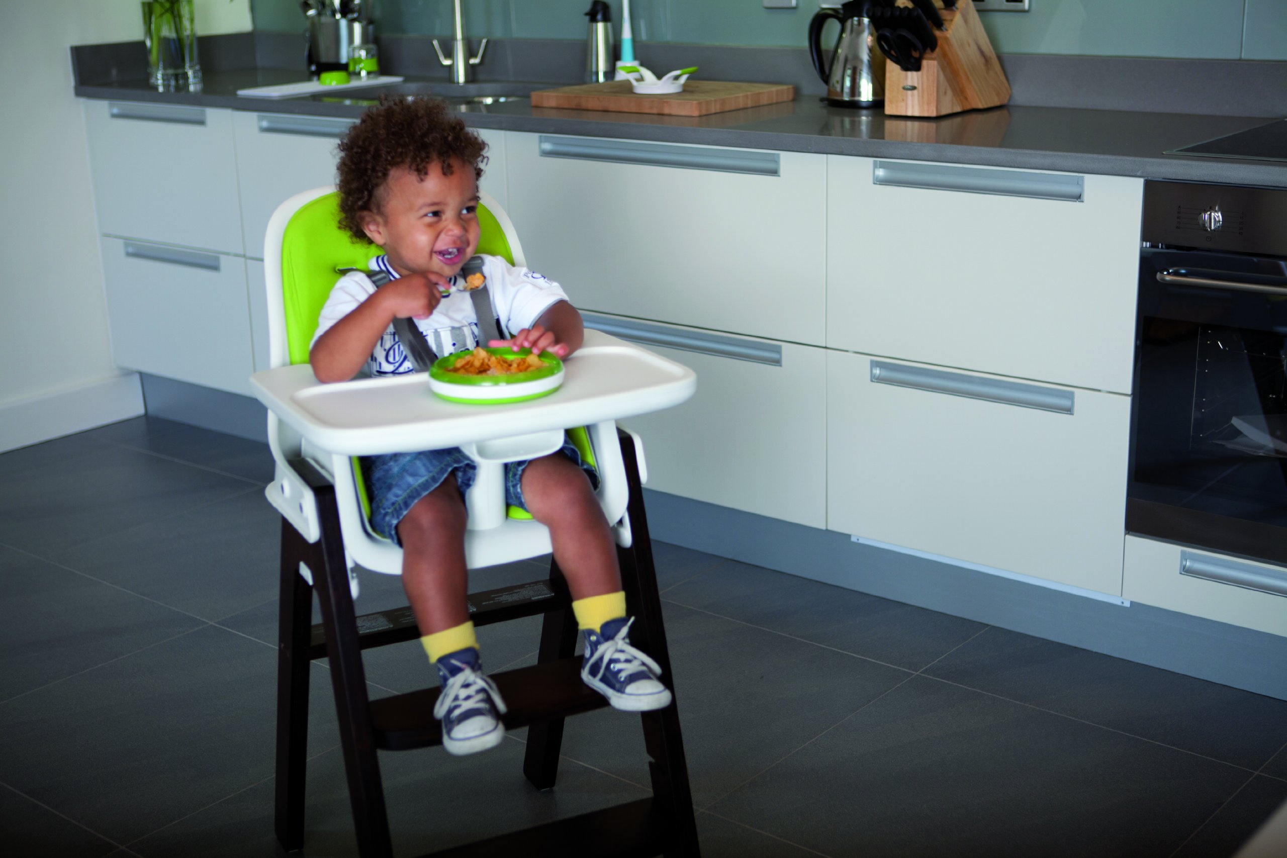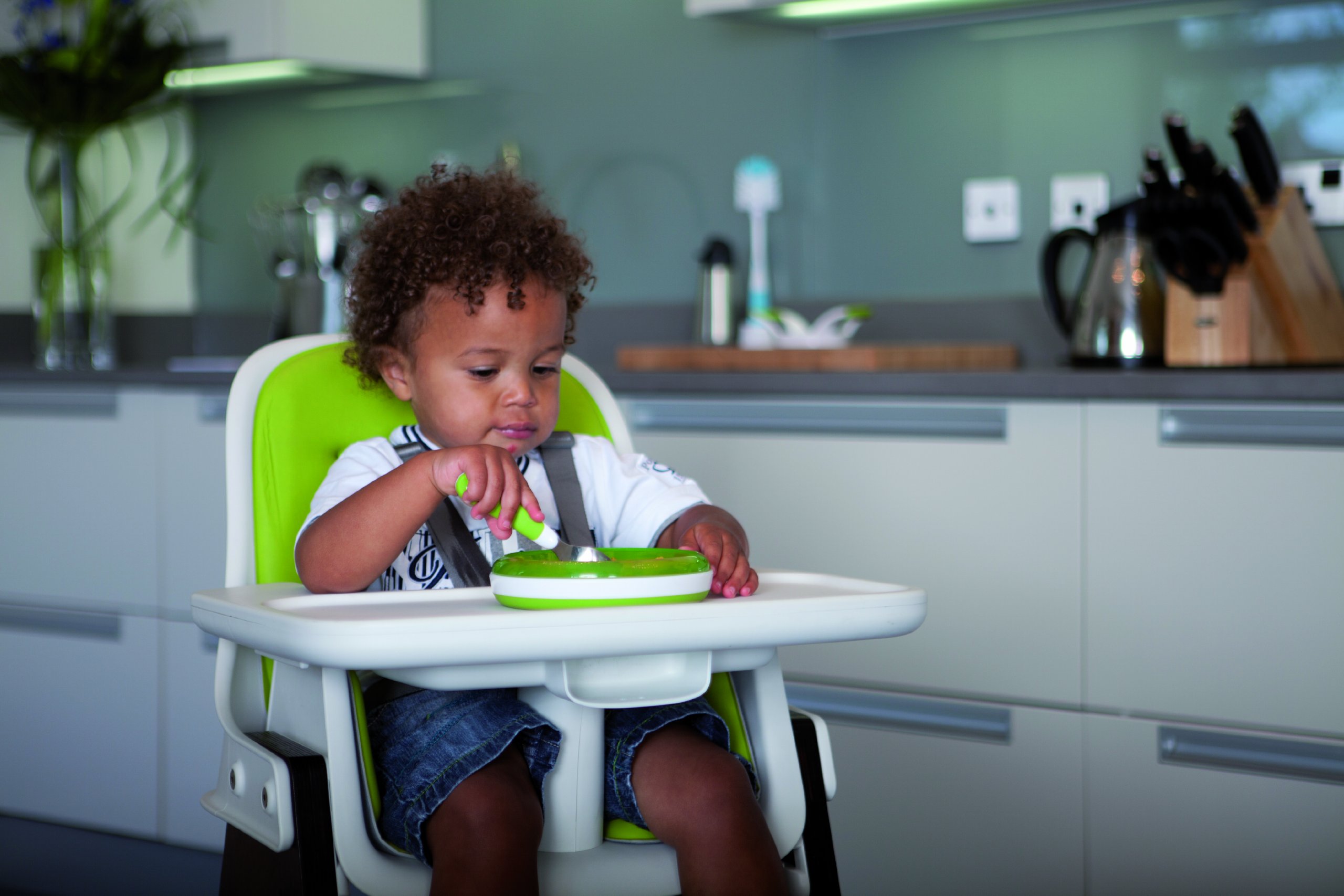 Rings attached to the periphery of the plate makes pasta and fruits less likely to spill as well, making it easier for children to scoop food with spoons or forks.