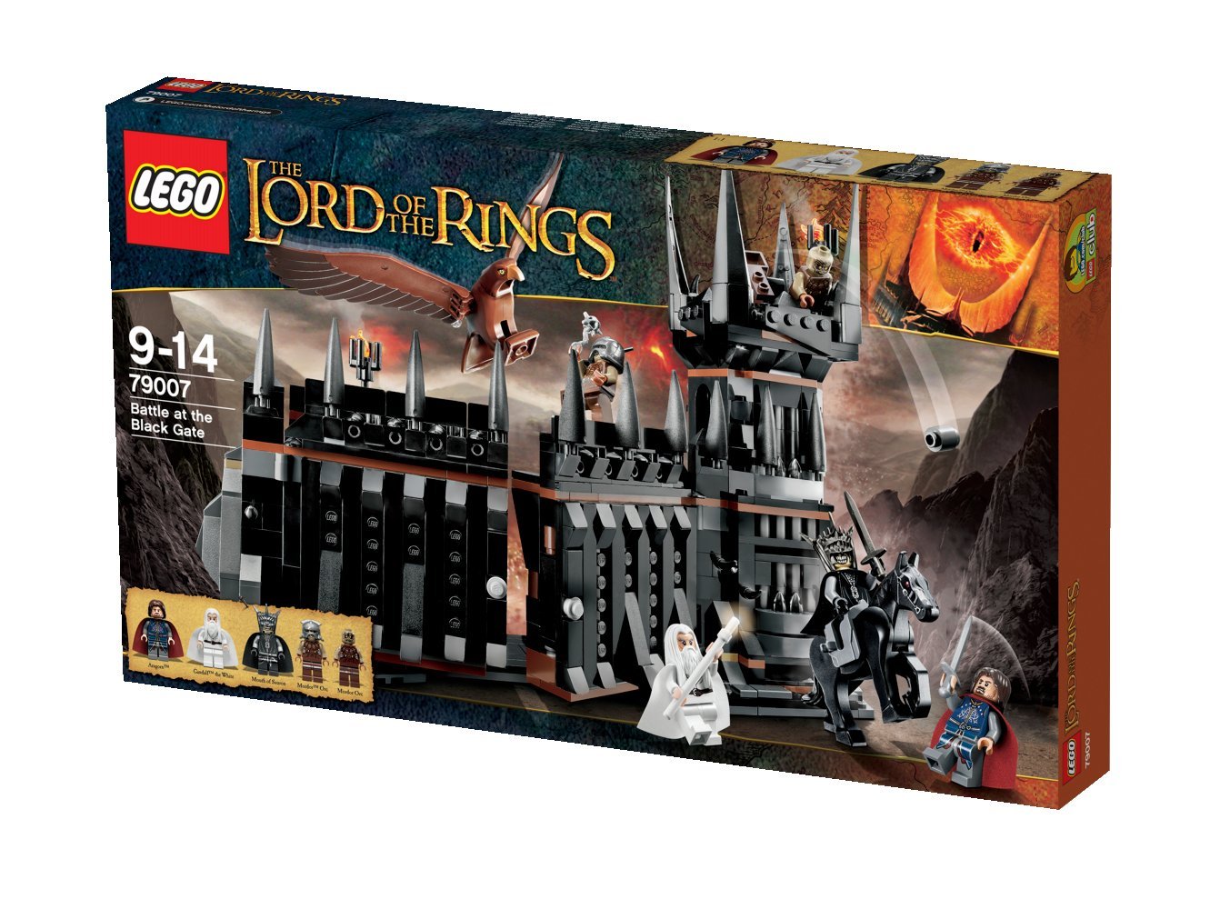 Destroy the gate and advance attacks advantageously! Steller's sea eagle, 5 body mini figures, with weapon: Aragorn, white Gandalf, mouth of Sauron, 2 Mordor oak.