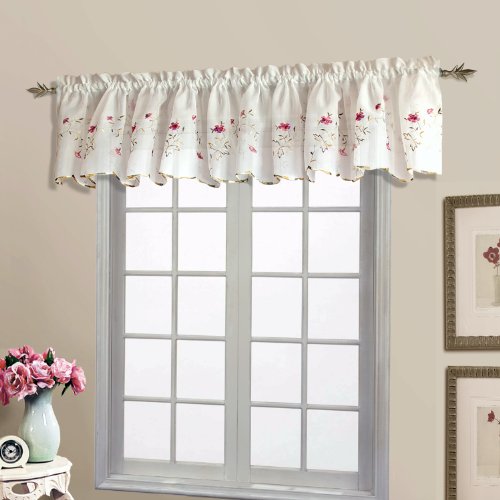 United Curtain Loretta Embroidered Sheer Shaped Valance, 52 by 18-Inch, White/Violet