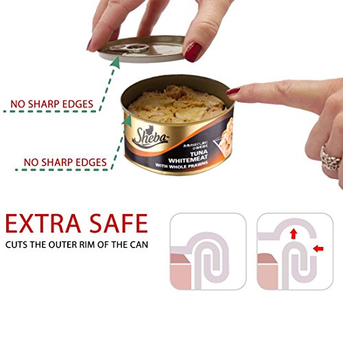 A HOT KNIFE THROUGH BUTTER: The razor sharp sphere discs cut through the tin cans effortlessly resulting in smooth child safe edges. The ever-safe side-cutting/turning design leaves smooth edge on the can and lid. Great for pet food cans! Just place the smooth-edge lid back on to the can to store uneaten food