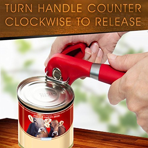 EASY TO USE: This side cutting safety can opener is quite simple to operate. The combination of the big knob, long ergonomic silicon handle, and sharp cutting wheel makes opening cans in a nearly effortless task, even for senior citizen with weak hands from arthritis and wrist problems