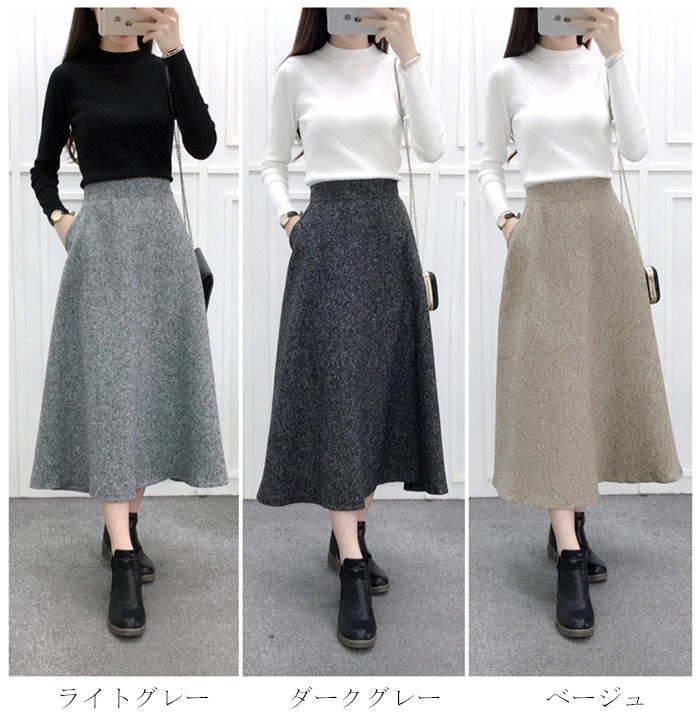 ロングスカート Aライン レディース フレアスカート ロング丈 スカート ミモレ丈 マキシスカート ウール混 秋 冬 厚手 スカート 無地 ロング レディースボトムス ウール混スカート ウエストゴム 秋スカート 冬スカート キレイめ コーデ 着痩せ 通勤 オフィス 30代 40代 50代 ファション おしゃれ★素材:ポリエステル生産国:中国柔軟度:柔らかめ★カラー:ライトグレー ダークグレー ベージュ※お客様ご使用のPC環境により商品画像のカラーが多少異なる場合があります。仕入時期により多少デザインなど異なる場合があります。ご了承ください。★サイズ(CM):M:ウエスト66-88cm 総丈77cmL:ウエスト68-92cm 総丈78cm※サイズは人の手によって測っているため、1-3cmの誤差がある場合がございます。予めご了承下さいませ。