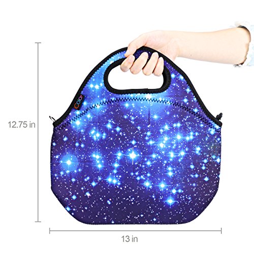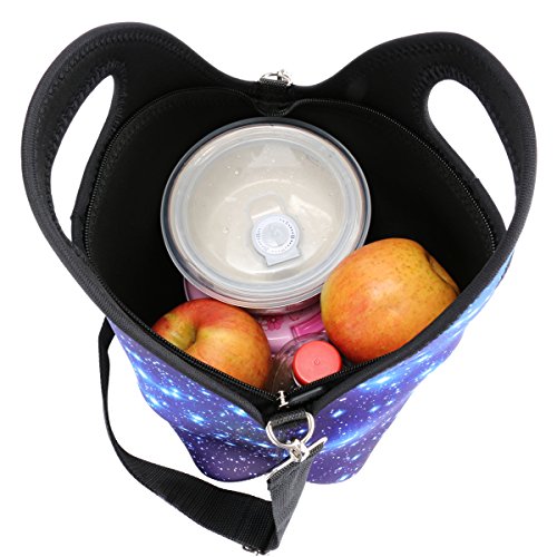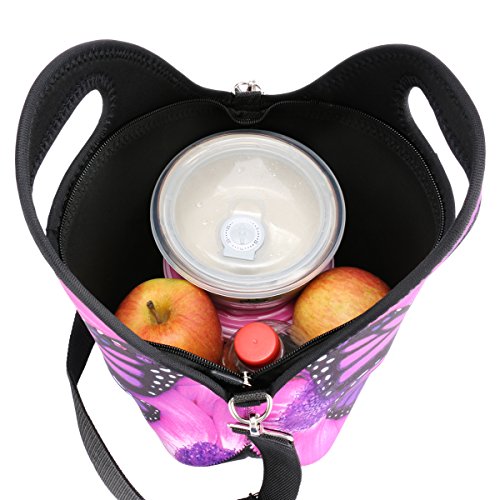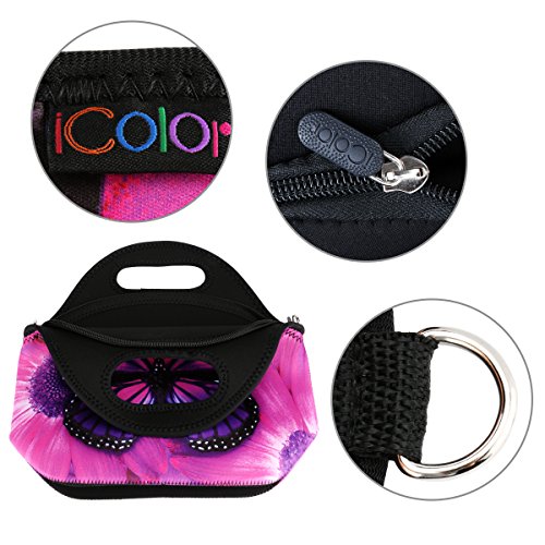-. Feature : IDEAL FOOD TEMPERATURES: Our premium iColor Large neoprene lunch bags made of extra thick 4.5mm neoprene, which keeps your food or drink cold or hot for hours depending on your needs, so you can enjoy perfect tasting meals whenever it's time for lunch.The material stretches to fit just about any reasonable size containers. / COMPACT, LIGHTWEIGHT DESIGN: iColor Lunch Bags feature are great for school or work lunches because they not only offer an easy-to-use zip enclosure at the top so that your items do not fall out, they can also fold flat for easy storage when not in use.With the Soft Mactching Cutlery Kit,you can stored your knife,fork,spoon in this stylish, washable neoprene case,Easy and convenient. / GREAT FOR KIDS & ADULTS: Both adults going to work and children going to school can find great use in this versatile lunchbox. Use it for food, holding a bento box, snacks, or even feminine products.you can carry it with your hand,in the arm,cross body,or over your shoulder with the removable shoulder strap. / EASY TO CLEAN: Unlike other bags that hold odors or can be difficult to clean, you can wipe our iColor neoprene bag in seconds or throw it in the washing machine and it's ready to go each and every day. Waterproof, breathable and soft, you won't find a better lunch box. / SATISFACTION GUARANTEE: We've made the best lunch bag available and in a variety of wonderful colors, This bag will last years, and if there's an issue, return for replace,no problems!