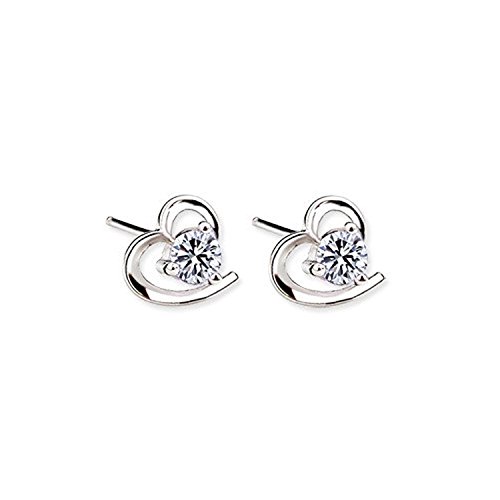 -. Title : [比翼堂] レディース ハート ピアス サージカル ステンレス ロジウムコーティング キュービックジルコニア 高級フランネルケース付き シルバー磨きクロス付き
