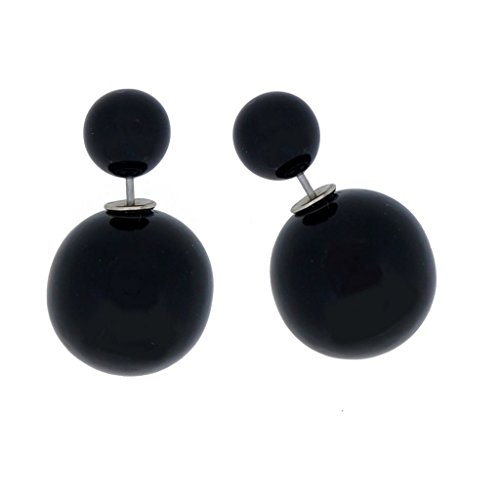 -. Title : Women's Double Side Electroplated Plastic Ball Stud Earrings, Black Color, 1 pair