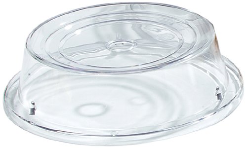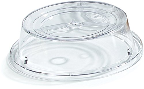This Carlisle 198907 plate cover is used to keep food warm and fresh and has a 10.31" inside diameter, a 10.6" outside diameter, and is 3" in height. It is made of polycarbonate for resistance to impact, grease, oil, detergent, and most inorganic acids. It can be used in heated carts or under heat lamps up to 212 degrees F. This plate cover is transparent for visibility and dishwasher-safe.