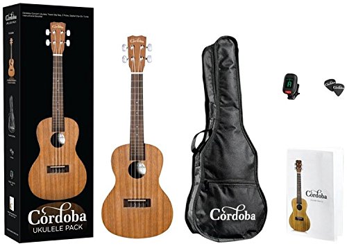 Studio : Cordoba Publisher : Cordoba Product Description A complete ukulele package containing an all mahogany Cordoba concert ukulele, gig bag, digital clip-on chromatic tuner with color display, picks, and a ukulele chord and lesson book including lessons from Alfred Music Publishing. 0