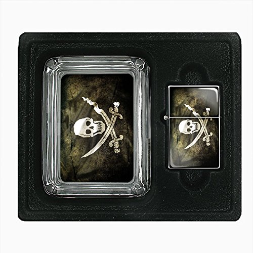 -. Title : Vintage Pirate Ship S7 Custom Glass Ashtray Gift Set with Flip Top Oil Lighter In Velvet Box Smoking Retro High Seas