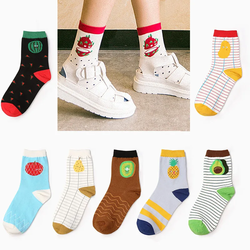 Model Number: wz239 Pattern: banana/ Kiwi/ avocado/ pineapple pattern: potato/ Dragon fruit/ watermelon/ Sydney color: green blue yellow red white black coffee Brown Suitable for the crowd: women, ladies, girl, female, High school student Office worker suitable for the crowd: College Students, Junior high school students, season: winter socks, autumn socks, spring socks, summer socks