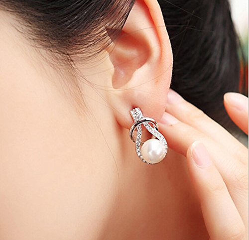 -. Binding : Jewelry -. Brand : Tabwing -. Department : womens -. Feature : 100% Brand New, Never Used / Material: 18k Gold / Size Approx: 0.95" by 0.52 / Perfect gift for any occasions that will surely make a memorable impression / Made with Swarovski Elements -. ProductGroup : Jewelry -. ProductTypeName : FASHIONEARRING -. Title : 18k White Gold Plated Swarovski Elements Pearl Stud Earrings for Women