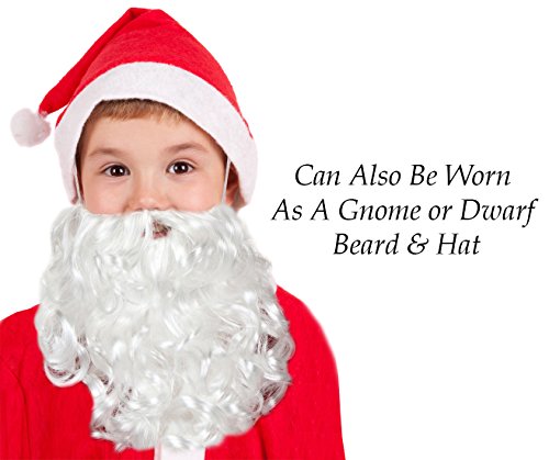 ✅ COMES WITH ONE SANTA BEARD AND HAT - Set comes with one Santa Beard Beard with an elastic band that goes over the child head. Also includes one Kid's Santa Hat that fits most kids up to Age 14. Set can also make a nice addition to any Gnome Costume.