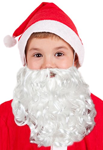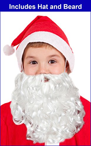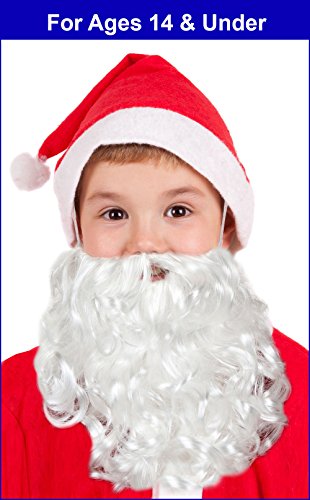 • COMES WITH ONE SANTA BEARD AND HAT - Set comes with one Santa Beard Beard with an elastic band that goes over the child head. Also includes one Kid's Santa Hat that fits most kids up to Age 14.