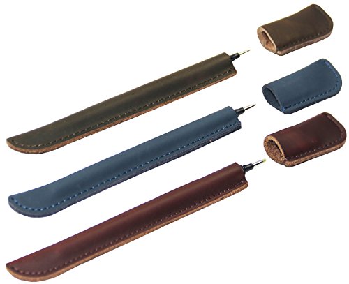 HzCodelo Handmade Leather Crafted Rolling Ballpoint Gel Pen,Rollerball point Pens Set,3 Pack-(Leather Case Color:Dark Brown,Blue,Wine;Ink Color:Black,Blue,Red)