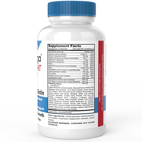 Hairomega DHT Blocker supports hair growth and blocks DHT with 41 ingredients natural herbs & vitamins including 5000 mcg Biotin, Beta-Sitosterol, Saw Palmetto, and Pygeum