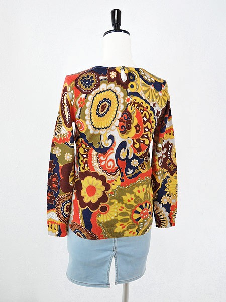 カラフルでエスニックな風合いの花柄セーターです。