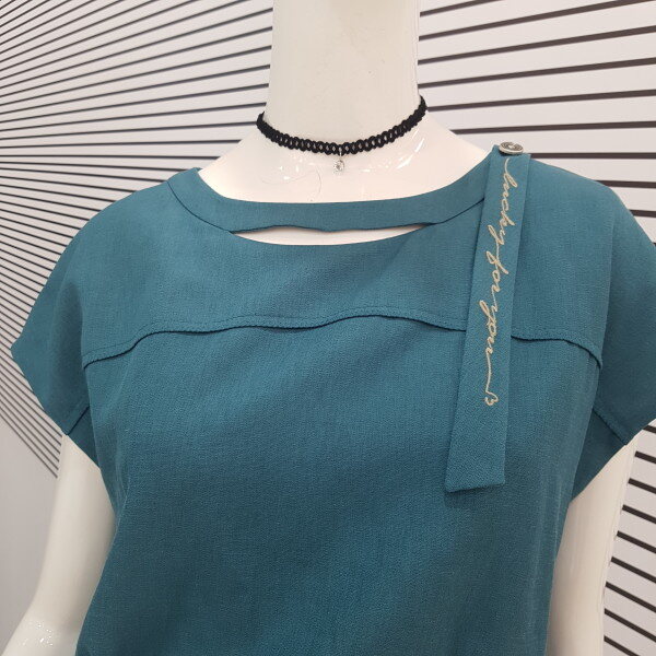 차분하면서도 여성스런 핏감과밋밋함을 없애주기위해 목부분에 포인트장식을 더했읍니다~