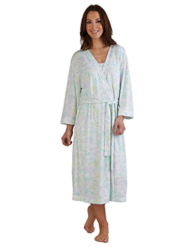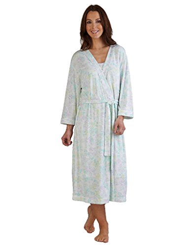 Slenderella Mint Floral Pleated Front Jersey 45" Long Sleeve Kimono Wrap