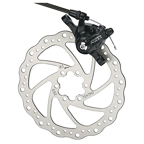 Aluminum construction. Includes caliper, adapter, rotor, cable and housing