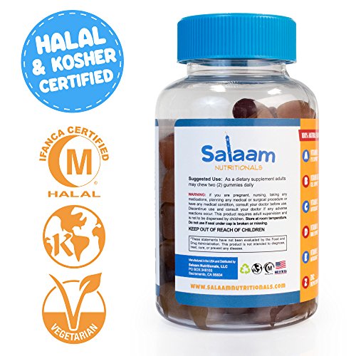 Now delicious easy to eat gummy vitamins are for adults. Salaam Nutritionals certified halal and kosher gummy vitamins provide 11 essential vitamins and minerals, including vitamins A, B6, B12, C, D, E, folic acid, biotin, and zinc. 80% of your immune system is in your gut, so get rid of the bad bacteria with our concentrated, antioxidant rich formula. Both men and women can benefit from boosting energy, building stronger bones, fighting off colds, and improving mood.