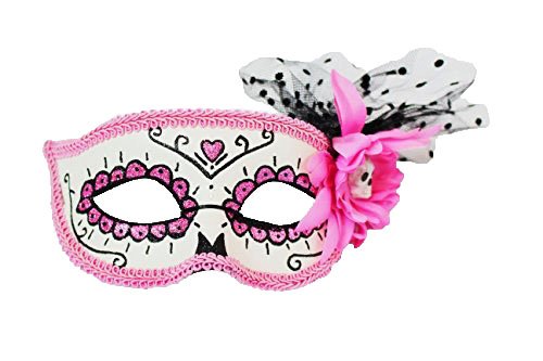 -. Brand : Spurs Girl -. Color : Pink,white,black -. Department : womens -. EAN : 0715202160413 -. Feature : Dia De Los Muertos Mask o/s / Black Veil, / Pink Flower w/ Skull / elastic band -. PackageQuantity : 1 -. ProductGroup : Apparel -. ProductTypeName : ADULT_COSTUME -. Size : One Size Fits All -. Title : Pink Dia De Los Muertos Mask (Day of the Dead) -. UPC : 715202160413