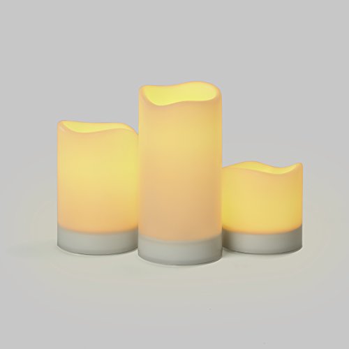 Ivory Solar Flameless Pillar Candles, Rechargeable, Warm White LEDs, Outdoor Use, Batteries Included - Set of 3