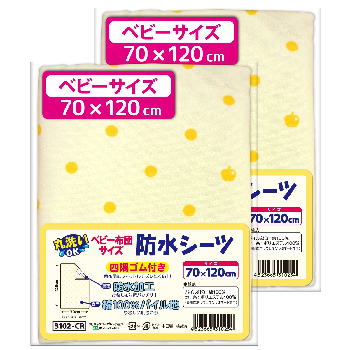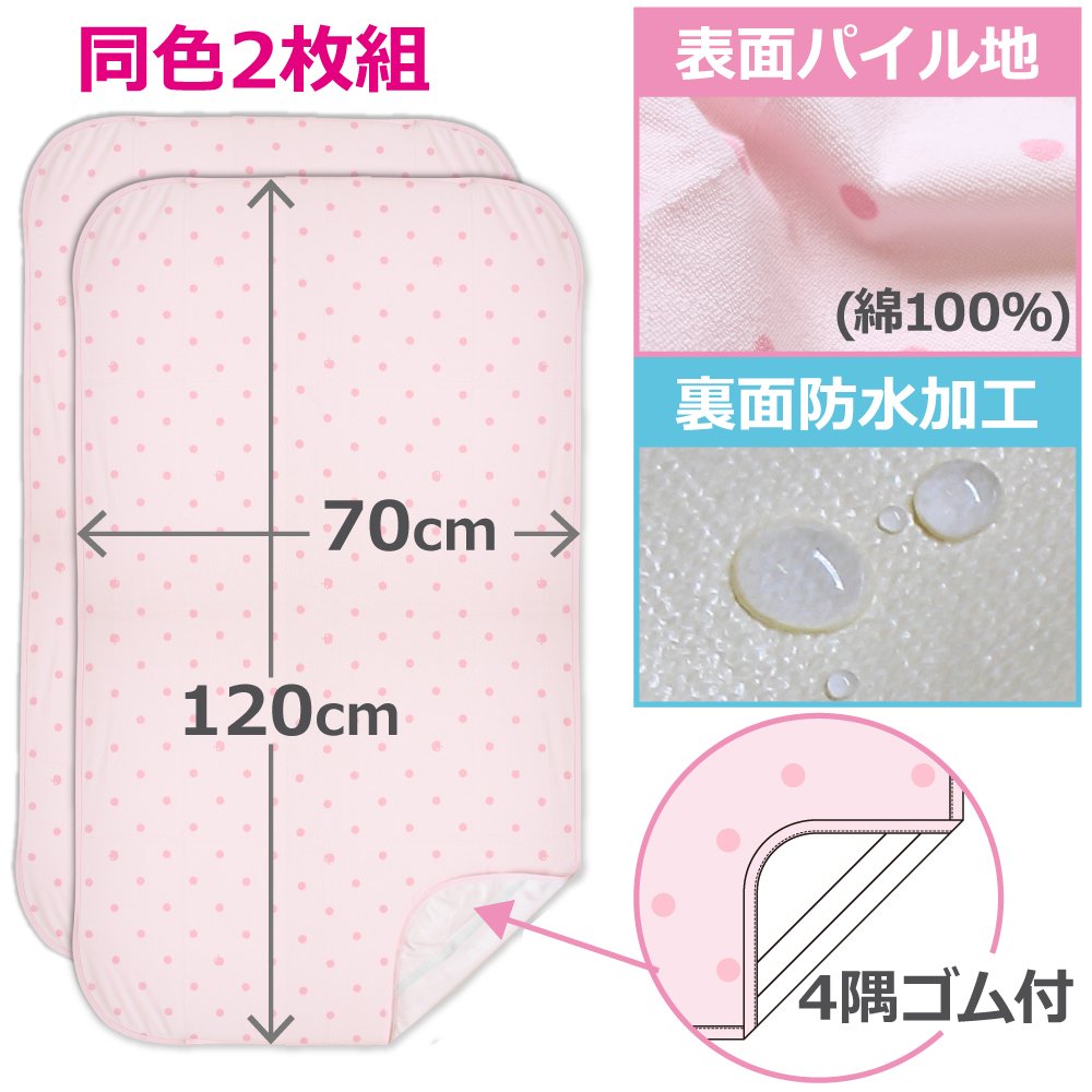 100% cotton terry print Bedwetting Sheets (waterproof sheets) two set 70 × 120cm No.3102 (2) (cream)
