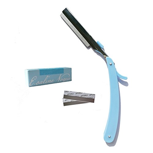 Sharp Eyebrow Razor with 10 Blade, Eyebrow Trimmer Pack Facial Hair Remover Grooming Shavers Stainless Steel Eyebrow Razor for Women Men (Blue)