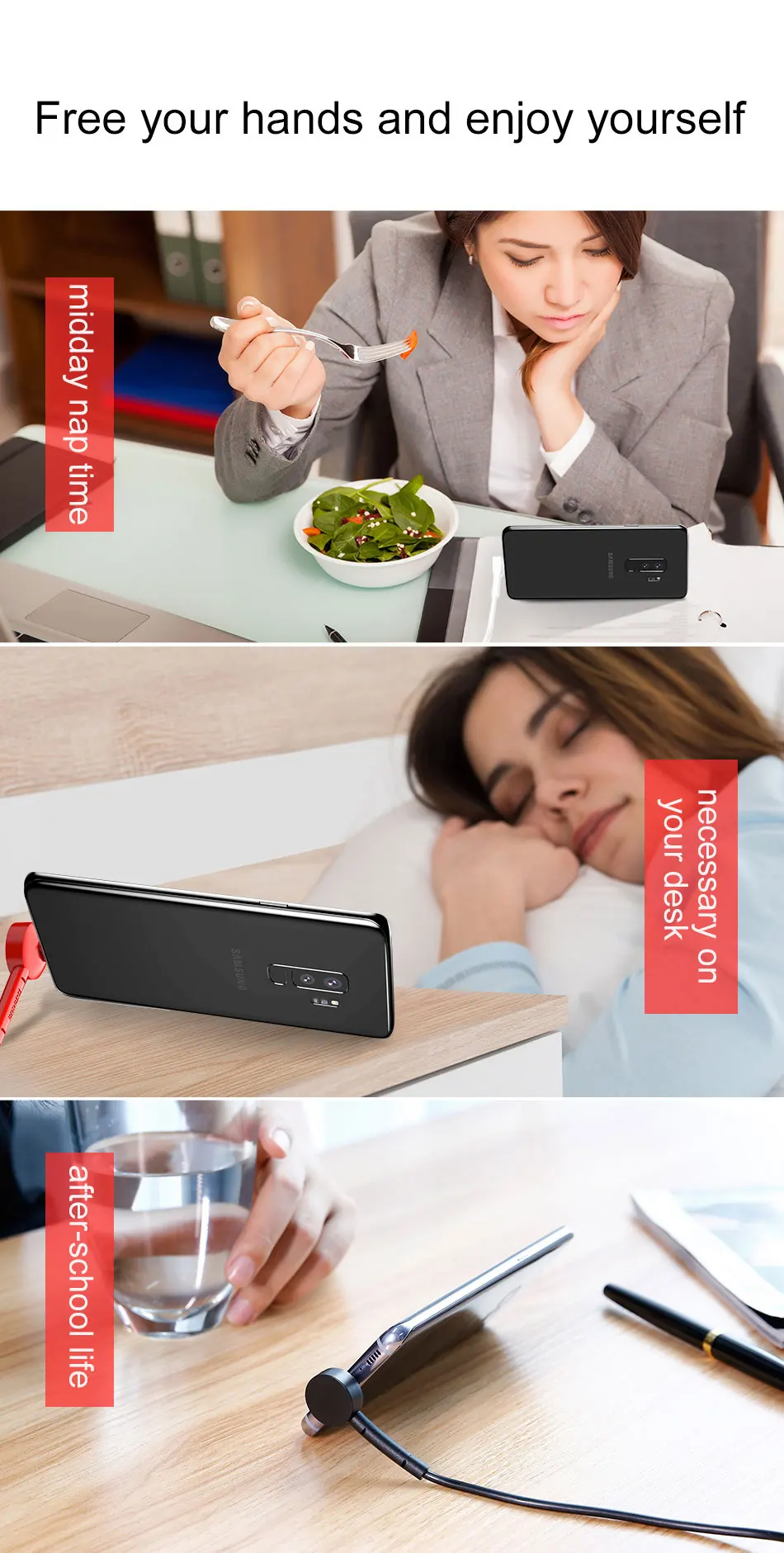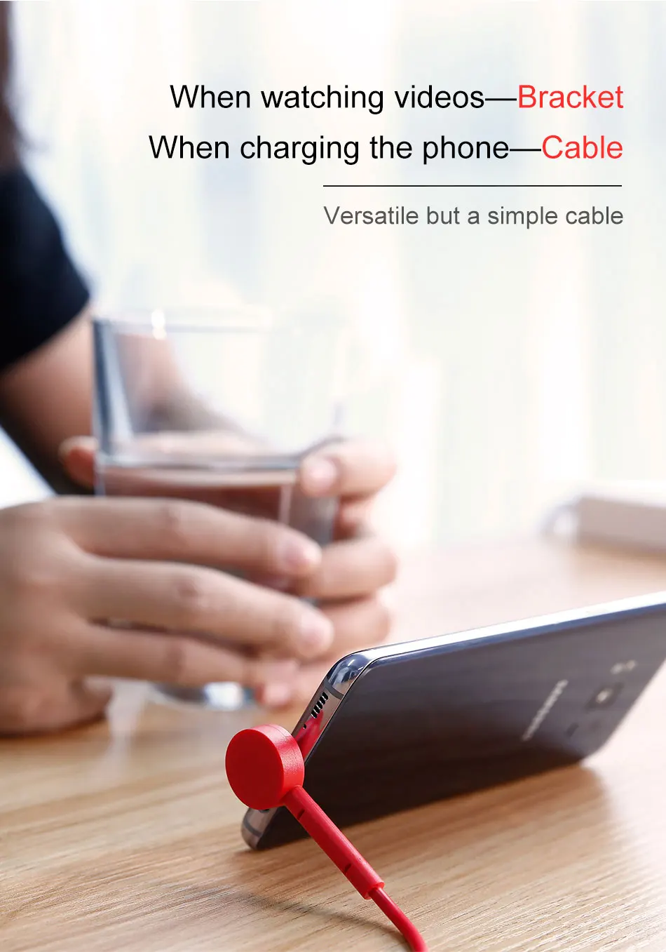 Function 1:Phone Holder, Bracket Stand, USB Cable Holder